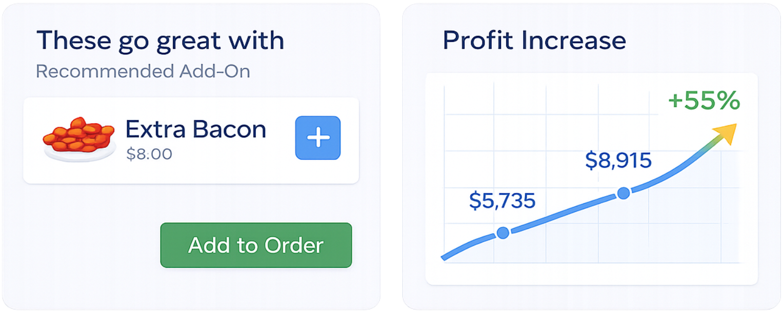 Increase value with suggestions that feel helpful, not pushy. Recommend relevant add-ons at the perfect moment.